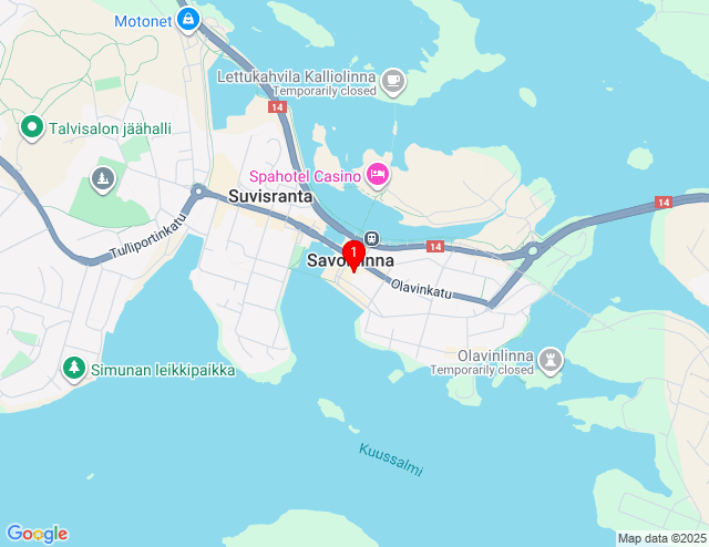 Savonlinna, Swedish Nyslott, is a small city in [wiki=1322c03b4d2af85ce1b025945ffa8682]South Savonia[/wiki] province, [wiki=d5960a98055361030d287db91e451dd6]Eastern Finland[/wiki], close to the [wiki=5feb168ca8fb495dcc89b1208cdeb919]Russia[/wiki]n border.